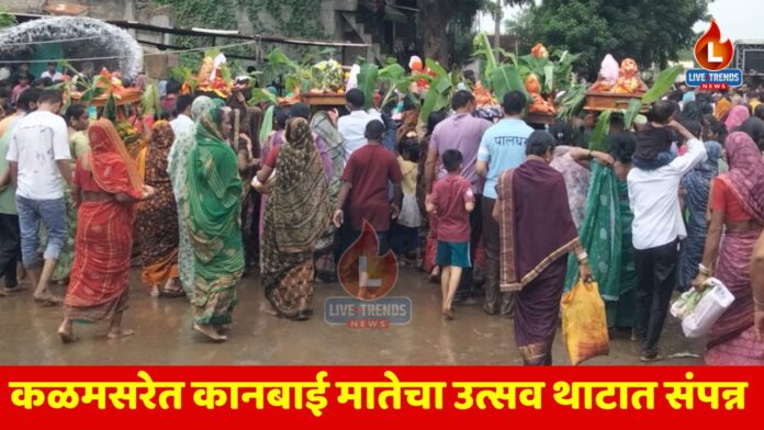 अमळनेर – लाईव्ह ट्रेंड्स न्यूज प्रतिनिधी । खान्देशातील एक महत्त्वाचा आणि भक्तिभावाने साजरा होणारा पारंपरिक सण — ग्रामदैवत कानबाई मातेचा विसर्जन सोहळा कळमसरे (ता. अमळनेर) येथे सोमवार, ४ ऑगस्ट रोजी पारंपरिक ढोल-ताश्यांच्या गजरात आणि महिलांच्या हृदयस्पर्शी निरोपात मोठ्या उत्साहात पार पडला. सलग तीन दिवस चाललेल्या या उत्सवात गावकऱ्यांबरोबरच गावाबाहेर राहणाऱ्या अनेक भाऊबंदांनी परिवारासह उपस्थित राहून एकात्मतेचे दर्शन घडवले.