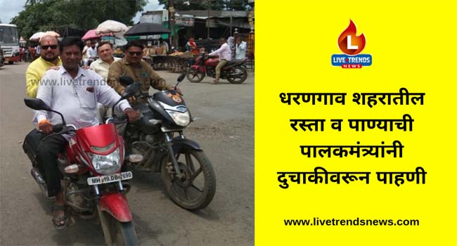 धरणगाव-लाईव्ह ट्रेंडस न्यूज प्रतिनिधी । धरणगाव शहरामध्ये अनेक दिवसापासून पिण्याच्या पाण्याचे पाईपलाईन बदलण्याचे काम सुरू आहे. यामुळे अनेक ठिकाणी कामासाठी रस्ते खोदून ठेवले आहेत. त्यामुळे नागरिकांना त्रास सहन करावा लागत आहे, याची पुर्ण कल्पना पालकंत्री गुलाबराव पाटील यांना आहे. त्यामुळे दुचाकीवर बसून गावातील रस्ता व पाण्याची पाहणी केली.