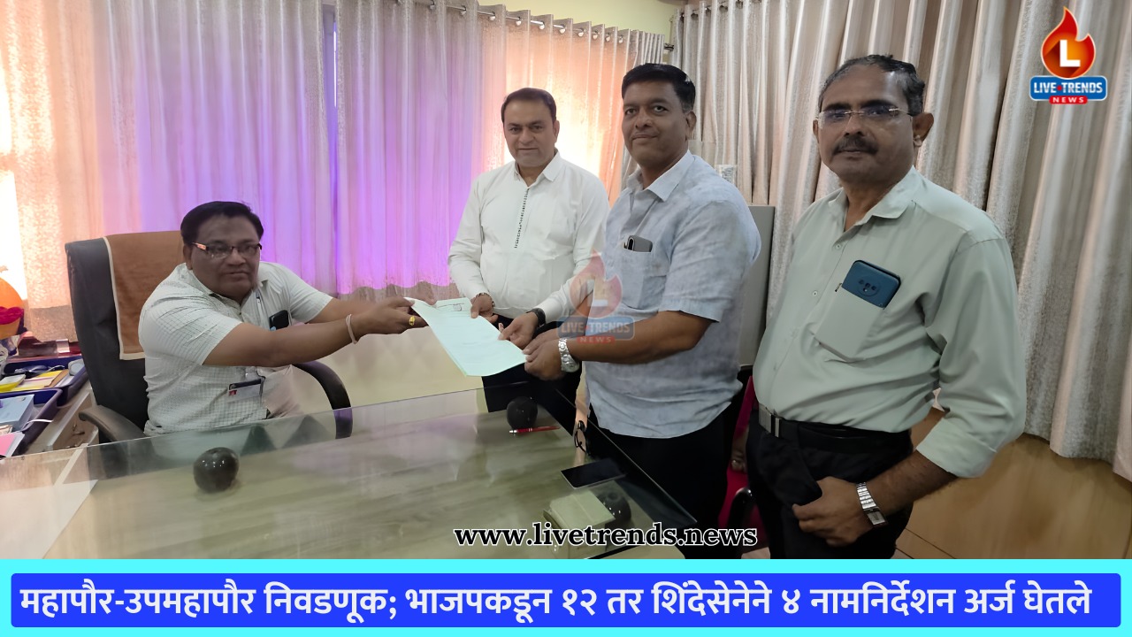 जळगाव-लाईव्ह ट्रेंड्स न्यूज प्रतिनिधी । जळगाव महानगरपालिकेच्या महापौर व उपमहापौर निवड प्रक्रियेला वेग आला असून शुक्रवारी भारतीय जनता पक्षाकडून महापौर व उपमहापौरपदासाठी नामनिर्देशन अर्ज घेण्यात आले. महायुतीची सत्ता स्थापन झालेल्या मनपात आगामी नेतृत्व कोणाकडे जाणार याकडे शहरवासियांचे लक्ष लागले आहे.
