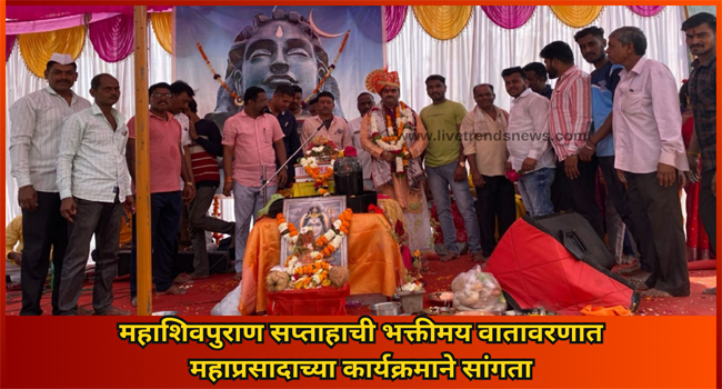 यावल-लाईव्ह ट्रेंडस न्यूज प्रतिनिधी । शहरातील सुतारवाडा परिसरात भाविभक्तांच्या उपस्थितीत भक्तीमय वातावरणात सुरू असलेल्या शिवमहापुराण सप्ताहाची पोथी वाचनाने समाप्ती तरूणांनी आयोजीत केलेल्या महाप्रसादाच्या कार्यक्रमाने झाली.