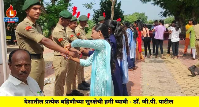 फैजपूर-लाईव्ह ट्रेंडस न्यूज प्रतिनिधी । बहीण-भावाच्या अतूट प्रेमाचे, स्नेहाचे व सुरक्षिततेचे नाते रक्षाबंधन उत्सवाच्या रूपाने समाजासमोर आदर्श प्रस्थापित करते. आपल्या समाजातील प्रत्येक बहिण सुरक्षित राहील, अशी हमी प्रत्येक तरुणाने घ्यावी, असे मत व्यक्त करीत भारत भूमीच्या सुरक्षेसाठी अहोरात्र प्राणपणाने सेवा बजावणाऱ्या वीर सैनिकांप्रती सन्मान व आदर व्यक्त करण्यासाठी महाविद्यालयाच्या वतीने आयोजित एनसीसी कॅडेट्सना रक्षाबंधन या उपक्रमाचे कौतुक व अभिनंदन केले.