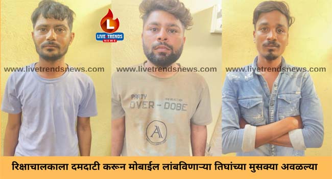 जळगाव-लाईव्ह ट्रेंडस न्यूज प्रतिनिधी । जळगाव शहरातील बेंडाळे चौकात रिक्षा चालकाला दमदाटी करून मोबाईल हिसकावल्याप्रकरणी शनीपेठ पोलीस ठाण्यात गुन्हा दाखल करण्यात आला होता. या गुन्ह्यातील तीन जणांना गेंदालाल मिल परिसरातून सोमवारी १७ जुलै रोजी दुपारी २ वाजता अटक केली आहे. तर चौथा फरार झाला असून त्याचा शोध सुरू आहे.