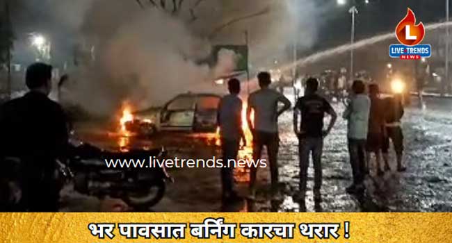 जळगाव-लाईव्ह ट्रेंडस न्यूज प्रतिनिधी । जळगावातील राष्ट्रीय महामार्ग क्रमांक ६ वरील अजिंठा चौफुली येथील हॉटेल मानस समोर उभ्या असलेला कारने बुधवारी ५ जुलै रोजी रात्री अकरा वाजता भीषण आग लागल्याची घटना घडली होती. अग्निशमन दलाच्या जवानांकडून ही आग विझविण्यात आली.