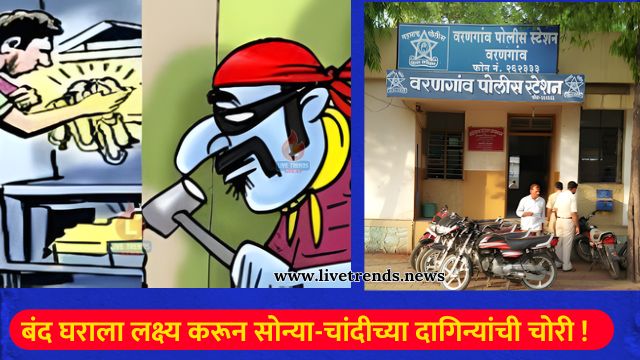 वरणगाव-लाईव्ह ट्रेंडस न्यूज प्रतिनिधी । वरणगाव शहरातील सुशील नगर, दर्यापूर परिसरात एका तरुणाच्या बंद घराचे कुलूप तोडून चोरट्यांनी सुमारे २ लाख ५५ हजार रुपये किमतीचे सोन्याचे आणि चांदीचे दागिने चोरून नेल्याची मोठी घटना समोर आली आहे. घरमालक प्रवासावरून परतल्यानंतर ही चोरी उघडकीस आली असून, याप्रकरणी वरणगाव पोलीस ठाण्यात अज्ञात चोरट्यांविरोधात गुन्हा दाखल करण्यात आला आहे.