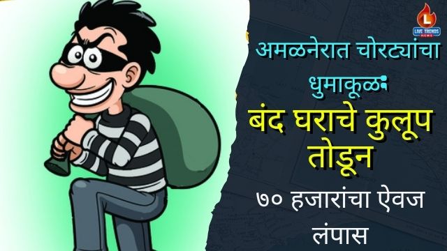 अमळनेर लाईव्ह ट्रेंडस न्यूज प्रतिनिधी । अमळनेर शहरातील समर्थ नगर परिसरात घरफोडीची एक गंभीर घटना समोर आली असून, अज्ञात चोरट्यांनी ७० हजार रुपयांचा सोन्या-चांदीचा ऐवज लंपास केला आहे. या प्रकरणी अमळनेर पोलीस ठाण्यात गुन्हा दाखल करण्यात आला आहे.