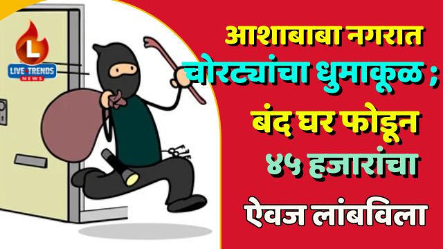 आशाबाबा नगरात चोरट्यांचा धुमाकूळ ; बंद घर फोडून ४५ हजारांचा ऐवज लांबविला