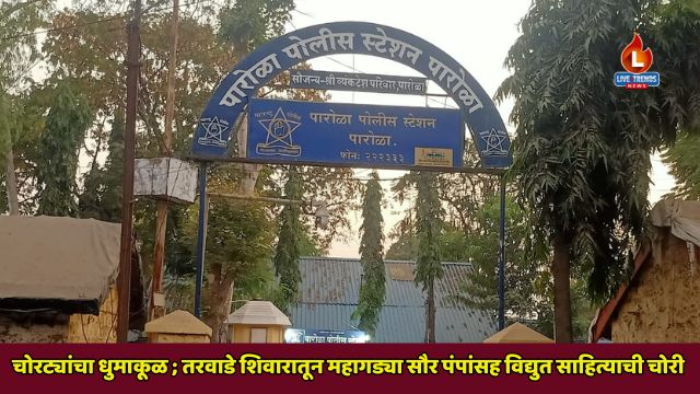 पारोळा-लाईव्ह ट्रेंडस न्यूज प्रतिनिधी । पारोळा तालुक्यातील तरवाडे शिवारात चोरट्यांनी आपला मोर्चा शेती साहित्याकडे वळवला असून, एकाच रात्रीत दोन शेतकऱ्यांच्या शेतातील विद्युत मोटारी आणि केबल लंपास केल्याची घटना उघडकीस आली आहे. याप्रकरणी पारोळा पोलीस ठाण्यात अज्ञात चोरट्यांविरुद्ध गुन्हा दाखल करण्यात आला आहे.