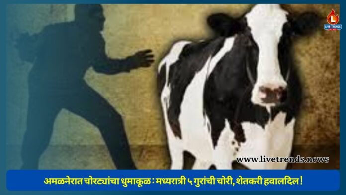 अमळनेरात चोरट्यांचा धुमाकूळ : मध्यरात्री ५ गुरांची चोरी, शेतकरी हवालदिल !
