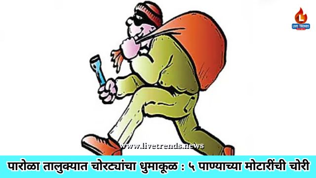 पारोळा तालुक्यात चोरट्यांचा धुमाकूळ : ५ पाण्याच्या मोटारींची चोरी