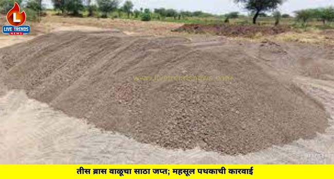 धरणगाव-लाईव्ह ट्रेंडस न्यूज प्रतिनिधी । धरणगाव तालुक्यातील बांभोरी गावाजवळ असलेल्या मोकळ्या जागेत अवैधरित्या वाळूचा साठा शनिवारी १९ ऑगस्ट रोजी पहाटे महूसल पथकाला आढळून आला. महसूल पथकाने वाळूचा साठा जप्त केला असून एकावर धरणगाव पोलीस ठाण्यात गुन्हा दाखल करण्यात आला आहे.