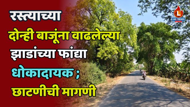 यावल-लाईव्ह ट्रेंड्स न्यूज प्रतिनिधी । यावल ते दहिगाव–सौखेडा सिम मार्गावर रस्त्याच्या दोन्ही बाजूंना वाढलेल्या झाडांच्या फांद्यांमुळे प्रवाशांच्या सुरक्षेचा प्रश्न निर्माण झाला आहे. विशेषतः एसटी बसने प्रवास करणाऱ्या प्रवाशांना या फांद्यांचा फटका बसण्याची शक्यता असल्याने गंभीर दुखापतीचा धोका वाढला आहे. त्यामुळे सार्वजनिक बांधकाम विभागाने तातडीने या धोकादायक फांद्यांची छाटणी करावी, अशी मागणी नागरिक व प्रवासी वर्गाकडून करण्यात येत आहे.