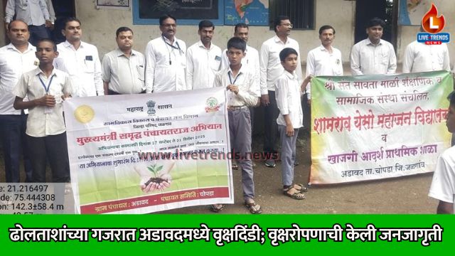 अडावद-लाईव्ह ट्रेंडस न्यूज प्रतिनिधी । अडावदमध्ये ‘मुख्यमंत्री समृद्ध पंचायतराज अभियान’ अंतर्गत ग्रामपंचायत प्रशासनाने वृक्षदिंडीचे आयोजन केले. या दिंडीचा भाग म्हणून, श्री संत सावता माळी शैक्षणिक व सामाजिक संस्था संचालित शाळांतील विद्यार्थ्यांनी ढोलताशांच्या गजरात रॅली काढली. या रॅलीचा मुख्य उद्देश विद्यार्थ्यांमार्फत वृक्षारोपणाचा संदेश घराघरात पोहोचवणे होता.