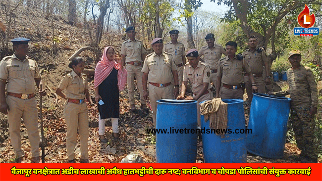 यावल-लाईव्ह ट्रेंडस न्यूज प्रतिनिधी | यावल वन विभाग अंतर्गत असलेल्या चोपडा तालुक्यातील वैजापूर वनक्षेत्रात अवैधरित्या आढळून आलेली सुमारे अडीच लाख किमतीची अडीच हजार लीटर हातभट्टीची दारू सात हजार रुपये किमतीचे ३५ बॅरल असा दोन लाख ५२ हजार रुपयांच्या मुद्देमाल वन विभागाने जप्त करत जागेवरच नष्ट केला आहे. वन विभागात अशा प्रकारे गैरकारभार करणाऱ्यांमध्ये एकच खळबळ उडाली आहे.