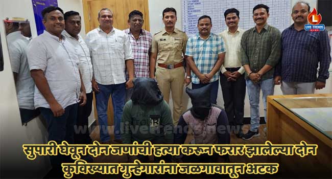 जळगाव-लाईव्ह ट्रेंडस न्यूज प्रतिनिधी । १६ लाखांची सुपारी घेवून दोन जणांचा गळा कापून खून प्रकरणात फरार असलेल्या दोन कुविख्यात गुन्हेगारांना जळगाव शहरातील अजिंठा चौकातून जळगावच्या स्थानिक गुन्हे शाखेच्या पथकाने अटक केली आहे. दोघांनी खूनाची कबुली दिली असून त्यांच्यावर पुढील कारवाई करण्यात येत आहे. अफजल अब्दुल शेख वय ३८ रा. उमरपाडा, सुरत आणि प्रज्ञनेश दिलीप गामीत वय २६ रा. तरकुवा डुंगरी फलीया ता. व्यारा जि. तापी गुजरात असे अटक केलेल्या दोन्ही कुविख्यात गुन्हेगारांची नावे आहेत.