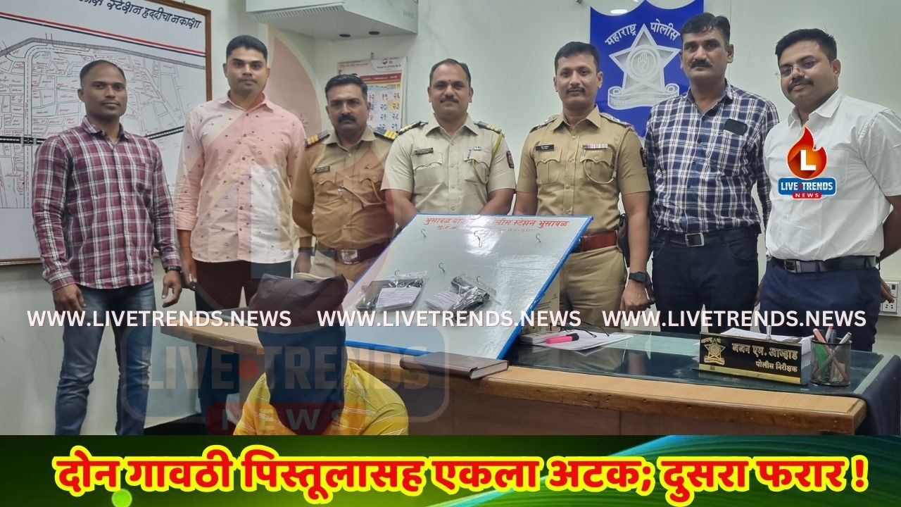 त्यानंतर थोड्या वेळाने पिस्तूल घेण्यासाठी योगेश नंदू सांगळे (वय-२९)  रा. नंदनवन कॉलनी , छत्रपती संभाजी नगर हा बोलेरो कार क्रमांक (एमएच १४ बीके ९०९४) घेवून आला. त्यावेळी पोलीसांनी छापा टाकला. यातील बंटी झरापकर हा पोलीसांना पाहून दुचाकी सोडून पसार झाला तर योगेश नंदू सांगळे याला अटक केली. त्याच्याकडून दोन गावठी बनावटीचे पिस्तूल आणि दोन्ही वाहने जप्त केले. याप्रकरणी पोलीस कॉन्स्टेबल  सागर वंजारी यांनी दिलेल्या फिर्यादीवरून भुसावळ बाजारपेठ पोलीस ठाण्यात रात्री उशीरा गुन्हा दाखल करण्यात आला आहे. पुढील तपास पोहेकॉ निलेश चौधरी करीत आहे.