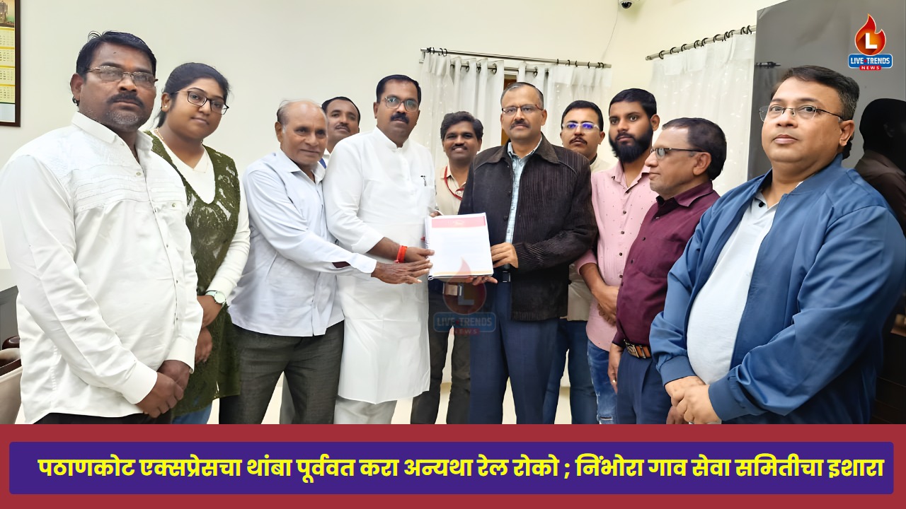 भुसावळ- लाईव्ह ट्रेंड्स न्यूज प्रतिनिधी । रावेर तालुक्यातील निंभोरा रेल्वे स्थानकावर पठाणकोट एक्सप्रेसचा थांबा पूर्ववत करण्याच्या मागणीसाठी आता जनक्षोभ उसळला असून रेल्वे प्रशासनाला अंतिम इशारा देण्यात आला आहे. निंभोरा व परिसर गाव सेवा समितीच्या वतीने आज शनिवारी, २४ जानेवारी रोजी मध्य रेल्वेचे विभागीय व्यवस्थापक (डीआरएम) पुनीत अग्रवाल यांची भेट घेऊन ५ हजार ग्रामस्थांच्या स्वाक्षऱ्यांचे निवेदन सोपवण्यात आले. येत्या दहा दिवसांत जर सकारात्मक निर्णय झाला नाही, तर कोणत्याही पूर्वसूचनेशिवाय आणि तारखेची घोषणा न करता ‘गनिमी काव्याने’ आकस्मिक रेल रोको व जेलभरो आंदोलन करण्याचा पवित्रा समितीने घेतला आहे. या आंदोलनाचे नेतृत्व समितीचे प्रमुख संयोजक विवेक ठाकरे करत असून, प्रशासनाने आंदोलनाची तीव्रता लक्षात घ्यावी, असा इशारा यावेळी देण्यात आला.