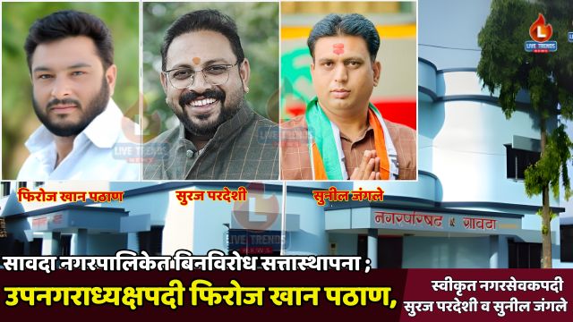 सावदा-लाईव्ह ट्रेंड्स न्यूज प्रतिनिधी । सावदा नगरपालिकेत उपनगराध्यक्ष तसेच स्वीकृत नगरसेवक पदांसाठी झालेल्या निवडणूक प्रक्रियेत सर्व निवडी बिनविरोध झाल्याने शहराच्या राजकारणात स्थैर्याचे वातावरण निर्माण झाले आहे. शांततेत व लोकशाही मार्गाने पार पडलेल्या या प्रक्रियेमुळे नगरपालिकेच्या पुढील कारभाराला दिशा मिळणार असल्याचे चित्र आहे.