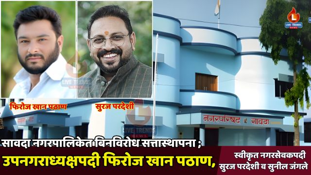 सावदा नगरपालिकेत उपनगराध्यक्षपदी फिरोज खान पठाण, स्वीकृत नगरसेवकपदी सुरज परदेशी व सुनील जंगले यांची निवड