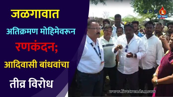जळगाव, लाईव्ह ट्रेडस न्यूज प्रतिनिधी : शहरालगत असलेल्या मोहाडी शिवारातील एकलव्य नगर भागात आज मंगळवार, ७ एप्रिल रोजी महापालिकेच्या अतिक्रमण निर्मूलन मोहिमेदरम्यान मोठा थरार पाहायला मिळाला. गेल्या २० वर्षांपासून वास्तव्यास असलेल्या आदिवासी बांधवांनी या कारवाईला कडाडून विरोध केल्याने परिसरात काही काळ तणावाचे वातावरण निर्माण झाले होते. अखेर प्रशासनाने नरमाईची भूमिका घेत चर्चेचे आश्वासन दिल्यानंतर हे आंदोलन मागे घेण्यात आले.