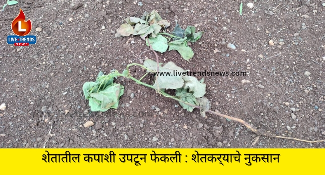 या संदर्भातील वृत्त असे की, अमळनेर तालुक्यातील मुडी बोदर्डे येथिल शेतकरी देविदास पाटिल यांच्या शेतातील काही समाज कंटकांनी त्यांच्या तीन बिघे शेतात कापसाचे दोनशे ते तीनशे झाडे उपटुन फेकले आहेत. यामुळे या शेतकर्याचे लाखो रुपयाचे नुकसान झाले आहे. या बाबत शेतकरी देविदास पाटिल यांनी मारवड पोलिस स्टेशनाला तक्रार दिली आहे.परंतू शेतात अद्यापही कोणतेही शासकिय अधिकारी पंचनामासाठी पोहचलेले नाहीत. या घटनेमुळे परिसरातील शेतकर्यांनी मोठ्या प्रमाणात रोष व्यक्त केला आहे.