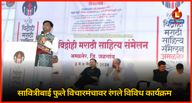 अमळनेर-लाईव्ह ट्रेंडस न्यूज प्रतिनिधी | येथील विद्रोही मराठी साहित्य संमेलनातील आदिवासी क्रांतिवीर ख्वाजा नाईक सभा मंडपाच्या सत्यशोधक सावित्रीबाई फुले विचार मंचाचे उद्घाटन राजेंद्र कळसाईत यांच्या हस्ते झाले.
