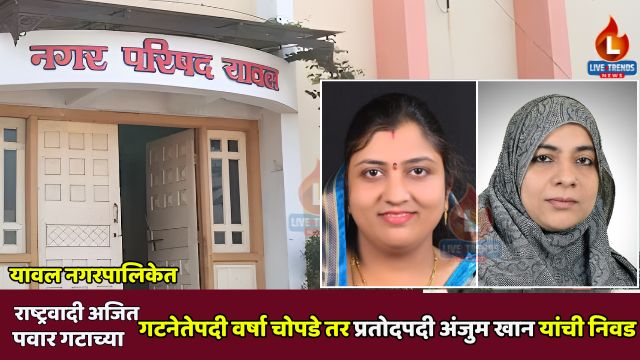 यावल-लाईव्ह ट्रेंड्स न्यूज प्रतिनिधी । यावल नगरपालिकेच्या नुकत्याच पार पडलेल्या सार्वत्रिक निवडणुकीनंतर राजकीय हालचालींना वेग आला असून, राष्ट्रवादी काँग्रेस अजित पवार गटाने आपली संघटनात्मक मांडणी पूर्ण केली आहे. नगरपालिकेत पक्षाचे तीन नगरसेवक विजयी झाल्यानंतर गटनेते व प्रतोद पदाची निवड प्रक्रिया पार पडली असून, या प्रक्रियेत सौ. वर्षा नीरज चोपडे यांची गटनेतेपदी तर अंजुम बी. कदीर खान यांची प्रतोदपदी निवड करण्यात आली आहे.