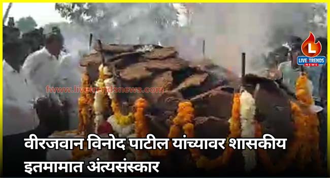 धरणगाव-लाईव्ह ट्रेंडस न्यूज प्रतिनिधी । तालुक्यातील रोटवद येथील वीर जवान विनोद शिंदे – पाटील यांना रविवारी १९ नोव्हेंबर रोजी सकाळी ११ वाजता हजारो नागरिकांनी साश्रूपूर्ण नयनांनी अखेरचा निरोप दिला. पालकमंत्री गुलाबराव पाटील यांनी जवान विनोद पाटील यांच्या पार्थिवावर पुष्पचक्र अर्पण करत श्रध्दांजली वाहिली. जिल्हा प्रशासनाच्या वतीने त्यांचा अंत्यसंस्कार शासकीय इतमामात करण्यात आला.