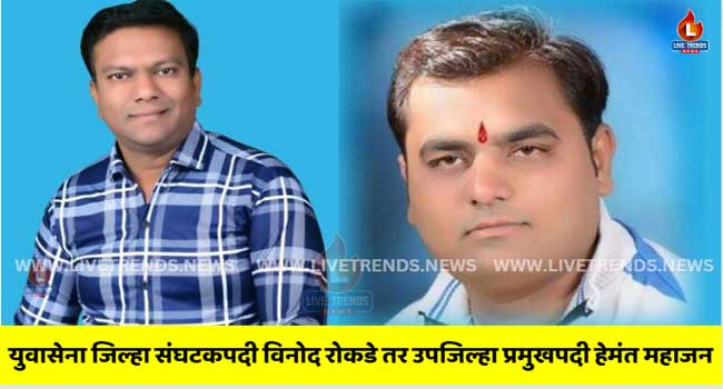 धरणगाव-लाईव्ह ट्रेंडस न्यूज प्रतिनिधी । शिवसेना उध्दव बाळासाहेब ठाकरे पक्षाच्या विविध पदाधिकारी यांची नियुक्ती करण्यात येत आहे. यात युवासेना जिल्हा संघटकपदी विनोद रोकडे तर युवासेना उपजिल्हा प्रमुखपदी हेमंत महाजन यांची निवड करण्यात आली आहे.