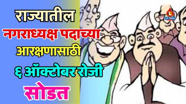 मुंबई, : राज्यातील नगरपरिषदा व नगरपंचायतींच्या नगराध्यक्ष पदासाठी आरक्षण निश्चित करण्यासाठी आरक्षणाची सोडत येत्या सोमवारी ( ६ ऑक्टोबर) रोजी काढण्यात येणार आहे. ही प्रक्रिया मंत्रालयातील परिषद सभागृहात, सहाव्या मजल्यावर पार पडणार आहे.