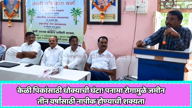 यावल -लाईव्ह ट्रेंड्स न्यूज प्रतिनिधी । यावल येथे आमदार अमोल जावळे यांच्या संकल्पनेतून आयोजित केलेल्या केळी प्रशिक्षण वर्गात पनामा या केळीवरील अत्यंत घातक बुरशीजन्य रोगाबाबत शेतकरी बांधवांना सतर्कतेचा इशारा देण्यात आला. प्रा. विजयराज गुजर यांनी मार्गदर्शन करताना स्पष्टपणे सांगितले की, एकदा शेतजमिनीत पनामा रोगाचा संसर्ग झाल्यास ती जमीन किमान तीन वर्षे उत्पादनक्षम राहत नाही. त्यामुळे केळी उत्पादकांनी या रोगापासून बचाव करण्यासाठी योग्य ती काळजी घेणे अत्यंत आवश्यक आहे.