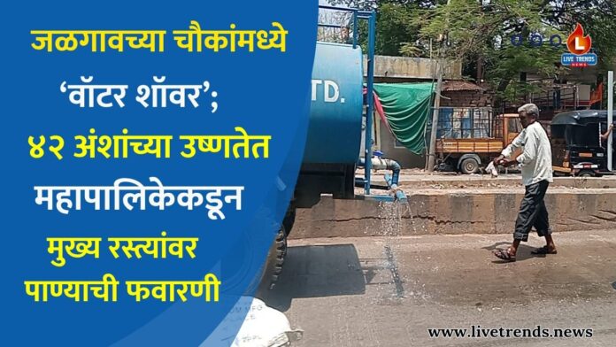 जळगाव-लाईव्ह ट्रेंड्स न्यूज प्रतिनिधी । शहरातील वाढत्या तापमानामुळे नागरिक हैराण असताना जळगाव महानगरपालिकेने उष्णतेपासून दिलासा देण्यासाठी अनोखा उपक्रम राबविला. तापमानाचा पारा ४२ अंशांच्या पुढे गेल्याने शनिवारी दुपारी शहरातील प्रमुख चौक आणि मुख्य रस्त्यांवर टँकरद्वारे पाण्याची फवारणी करण्यात आली. महापौर दीपमाला काळे यांच्या निर्देशानुसार राबविण्यात आलेल्या या ‘वॉटर शॉवर’ उपक्रमामुळे शहरात काही प्रमाणात थंडावा निर्माण झाला.