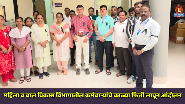 महिला व बाल विकास विभागातील कर्मचाऱ्यांचे काळ्या फिती लावून आंदोलन