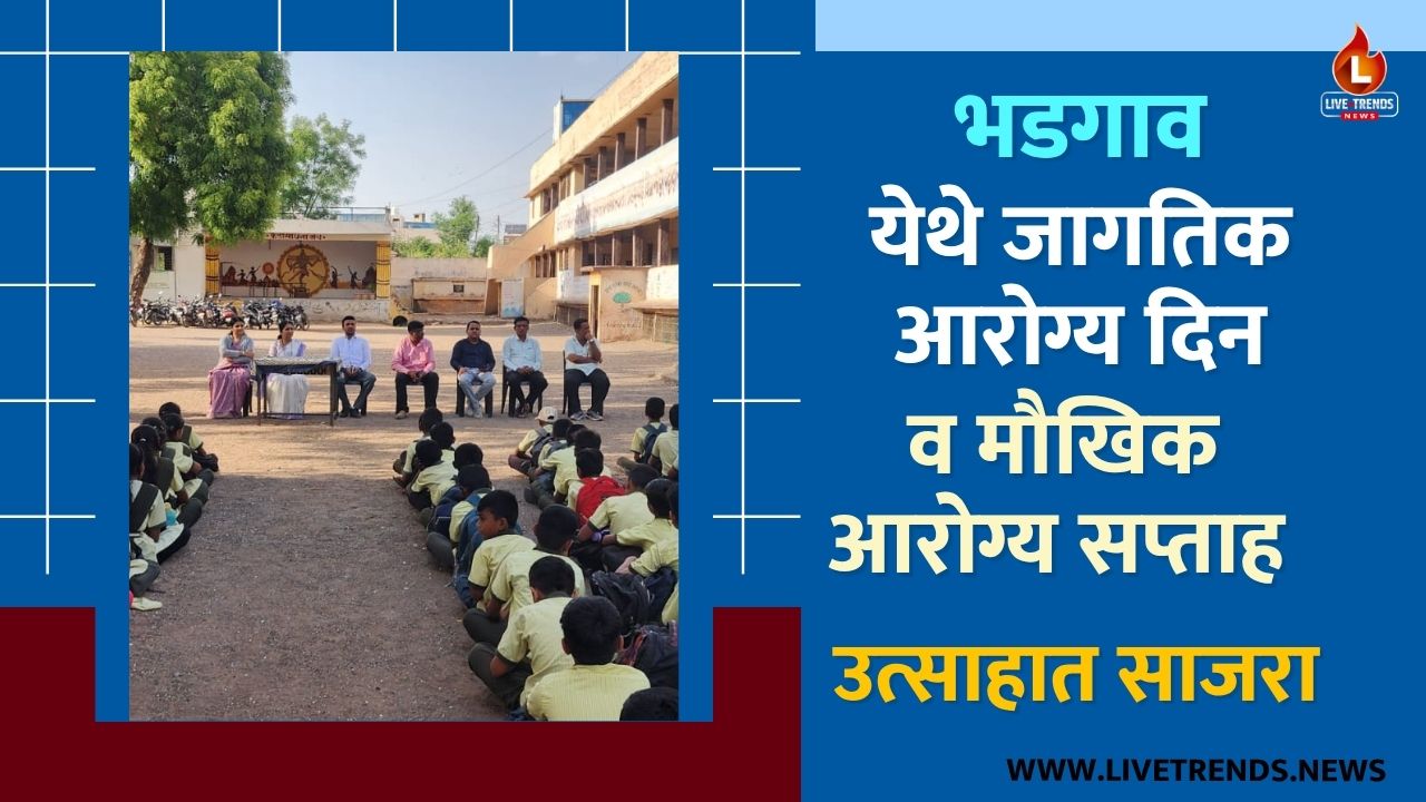 भडगाव -लाईव्ह ट्रेंडस न्यूज प्रतिनिधी । येथील कर्मवीर तात्यासाहेब हरी रावजी पाटील किसान शिक्षण संस्था संचलित लाडकुबाई विद्यामंदिर व दादासाहेब सुपडू मालजी पाटील कनिष्ठ महाविद्यालयात ७ एप्रिल रोजी जागतिक आरोग्य दिन व जागतिक मौखिक आरोग्य सप्ताह मोठ्या उत्साहात साजरा करण्यात आला. ग्रामीण रुग्णालय भडगाव यांच्या सहकार्याने आयोजित हा कार्यक्रम जिल्हा शल्यचिकित्सक डॉ. स्वप्नील सांगळे व वैद्यकीय अधीक्षक डॉ. पंकज जाधव यांच्या मार्गदर्शनाखाली पार पडला.
