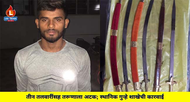 पाचोरा/जळगाव-लाईव्ह ट्रेंडस न्यूज प्रतिनिधी । पाचोरा तालुक्यातील मोहाडी गावात राहणाऱ्या तरुणाच्या घरात स्थानिक गुन्हे शाखेच्या पथकाने छापा टाकून बेकायदेशीरित्या लपवून ठेवलेल्या तीन तलवारी हस्तगत केल्या आहे. त्याच्यावर पिंपळगाव हरेश्वर पोलीस ठाण्यात गुन्हा दाखल करण्यात आला तरूणाला अटक केली आहे. हर्षल विनोद राजपूत (वय-२०) रा.मोहाडी ता.पाचोरा असे अटक केलेल्या संशयित आरोपीचे नाव आहे.